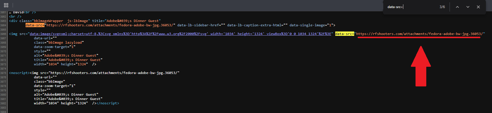 In my case I scrolled down the page until I found the correct wording to use, whis was data-scr=
