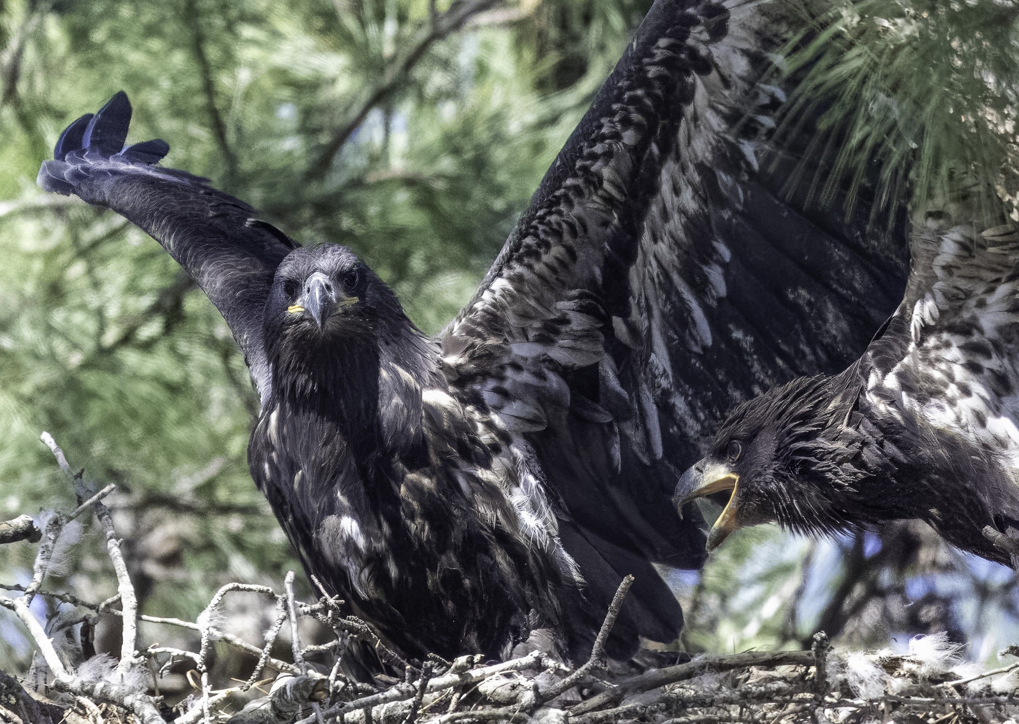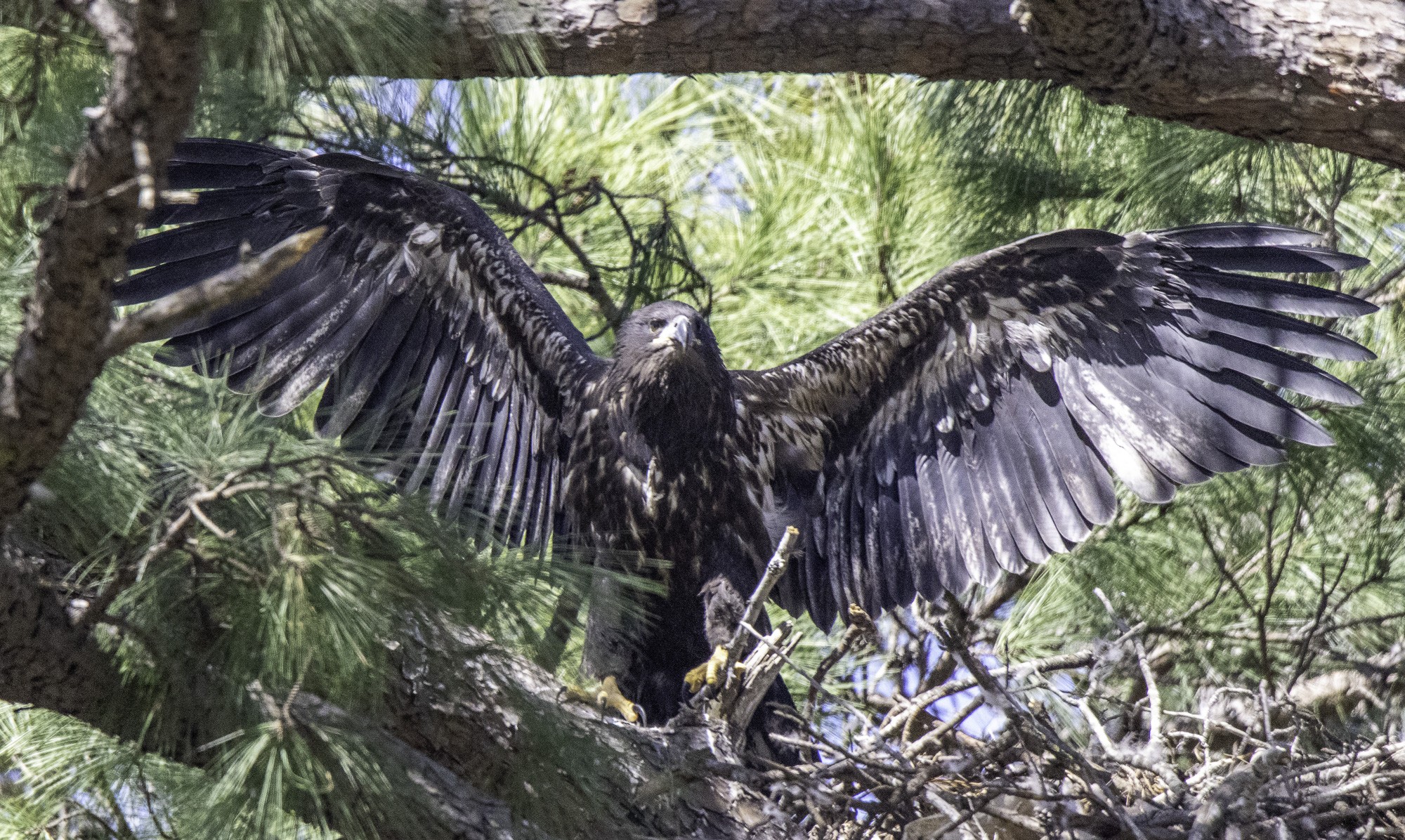 Great shots Chris!!There is a bald eagle nest not too far from my home, it has 2 chicks who are starting to get pretty big. I went and waited for some movement and the chicks suddenly got up and began to flap their wings, maybe testing them out for a future flight. The nest is fairly high up in a pine tree and there are only a few spots to shoot from. View attachment 25597View attachment 25598View attachment 25599View attachment 25600