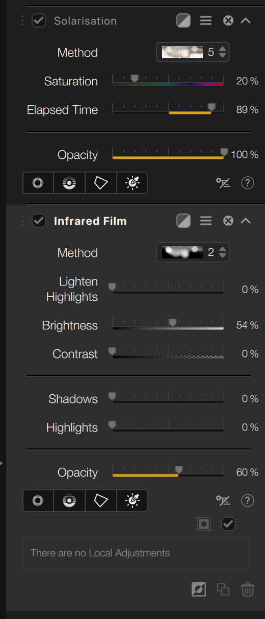 3. PS - Healing of minor blemishes on the flower petals and crop adjusted. TK9 Panels - minor subject spotlight and subtle contrast to petals added. NCE (Solarisation and Infrared Film Filters applied). PS - Very minor colour grading, custom logo brushed in (slight L->R fade created using a layer mask/ gradient).