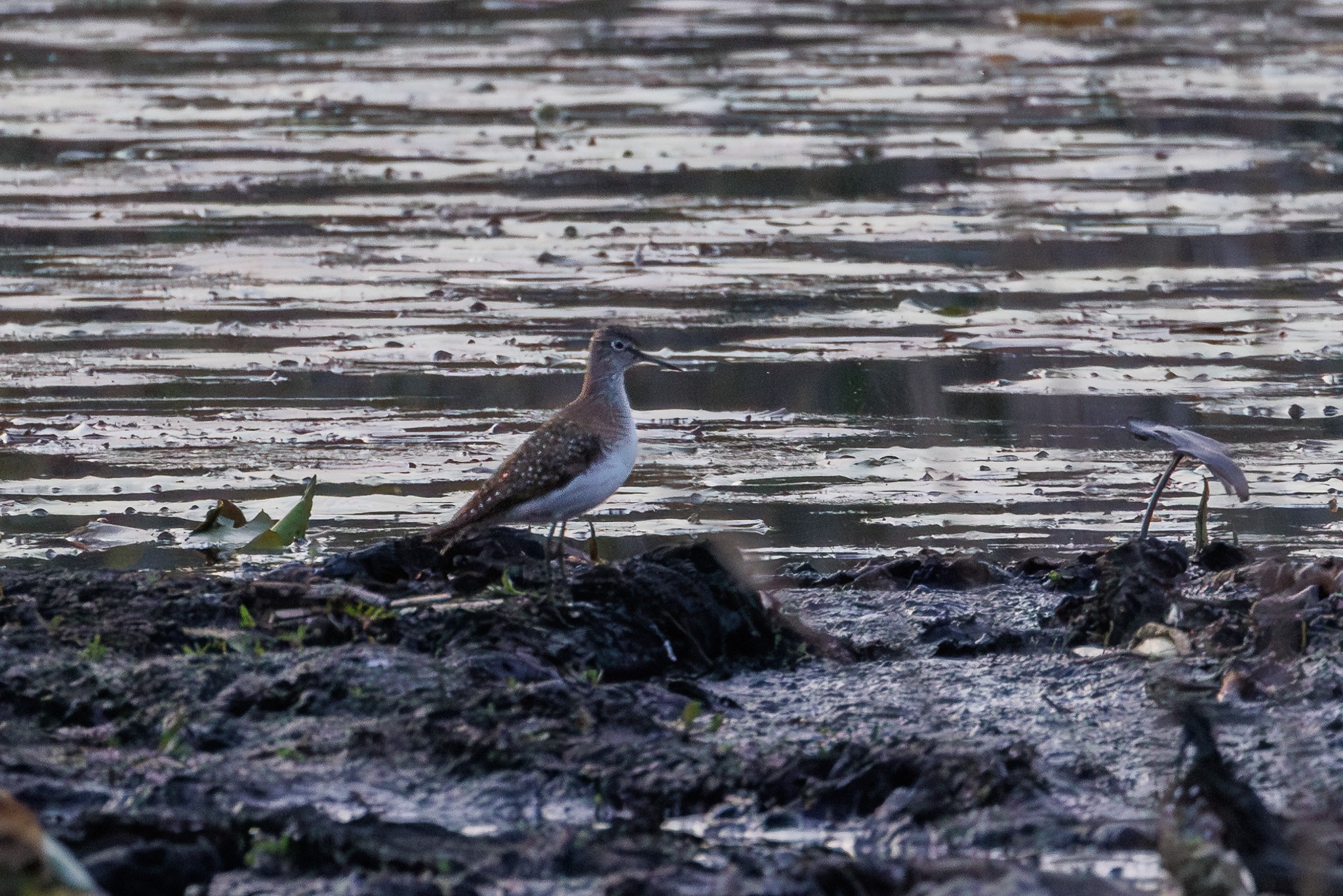 This last capture shows one of the reasons I'm continuously gobsmacked by the R5/RF800 f/11 combo. We saw this bird on a distant mudflat at sunset. I needed to to set the ISO at 16000 to get this (heavily cropped) photo of a solitary sandpiper. But even zoomed in on the camera LCD, our birding team was able to confirm the identity of the bird so that the sighting counted in the competition. This photo has the new Adobe LR Denoise treatment applied and is not going to win any awards or hang on our wall, but the fact that you can clearly identify the bird in a photo taken with a handheld 800 mm f/11 lens at ISO 16000 still amazes me.