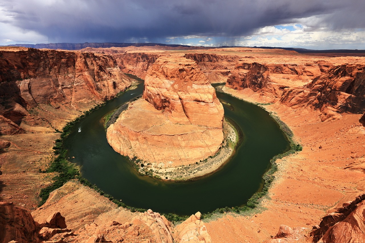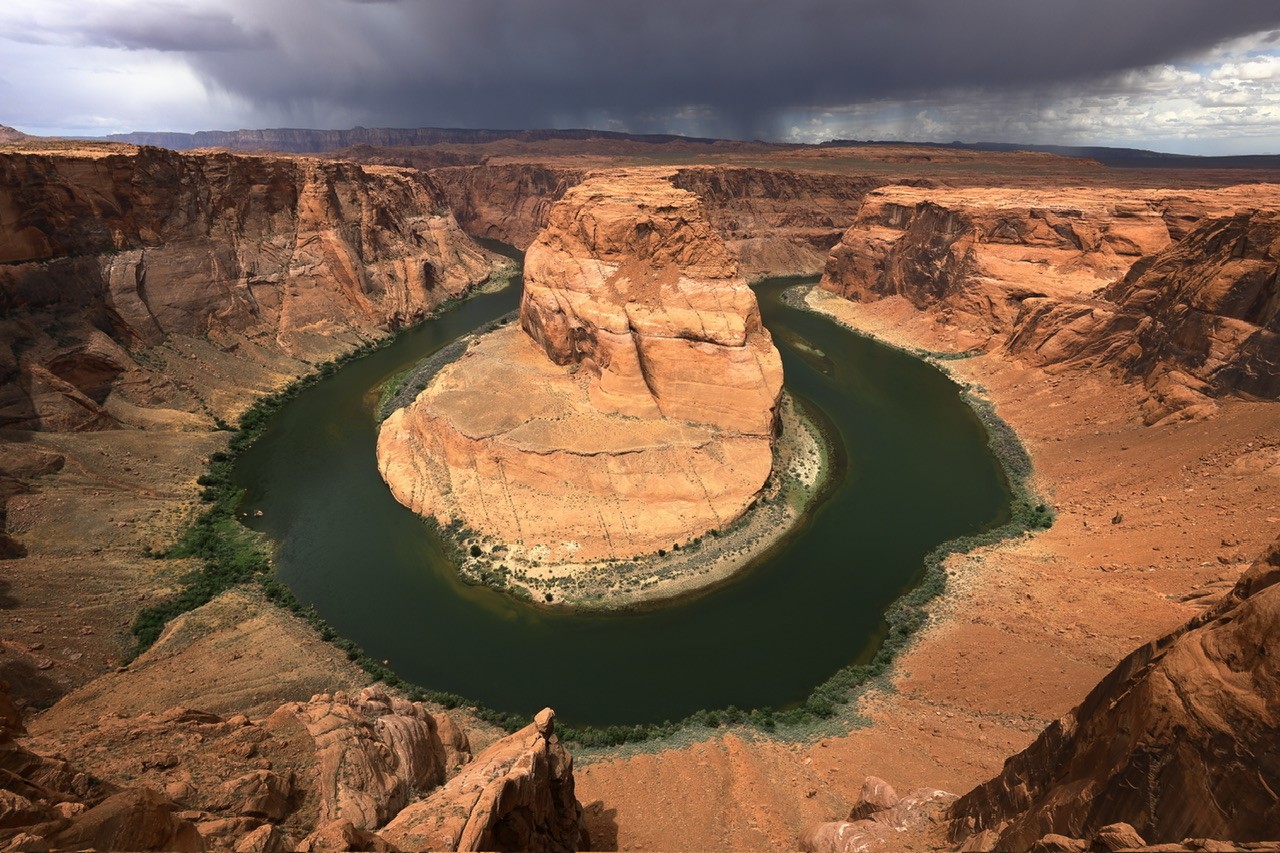 Not having been there, I will say the second version reflects the expected mood given the other variables like the cloud formations, rain, etc.Sometimes I like to go back and rework an image. First time around I think I over saturated it.