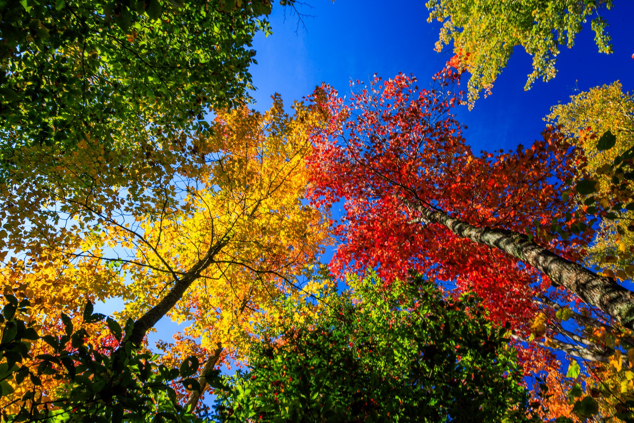 Taking Phil's advice, I added a little "something" to the colors, dodged the right side of the image and cropped to 16:9. I think that it looks better, though still far from a wall hanger. Like Don said, it's been a bad year for fall foliage - too much rain, too warm or too cold, too something. Anyway, your comments welcomed on the edit.