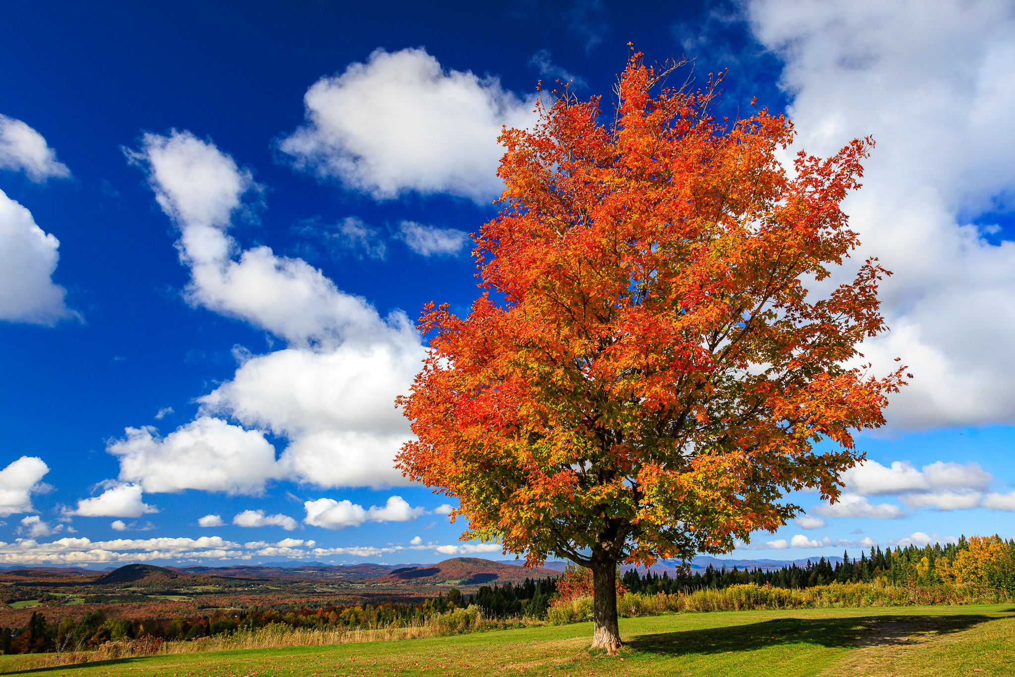 To close out this set, a nice orange tree in Sentinel Rock State Park in Vermont. The hills in the distance are normally glowing with orange color; the rusty colors and blue skies provide a nice background for this tree.