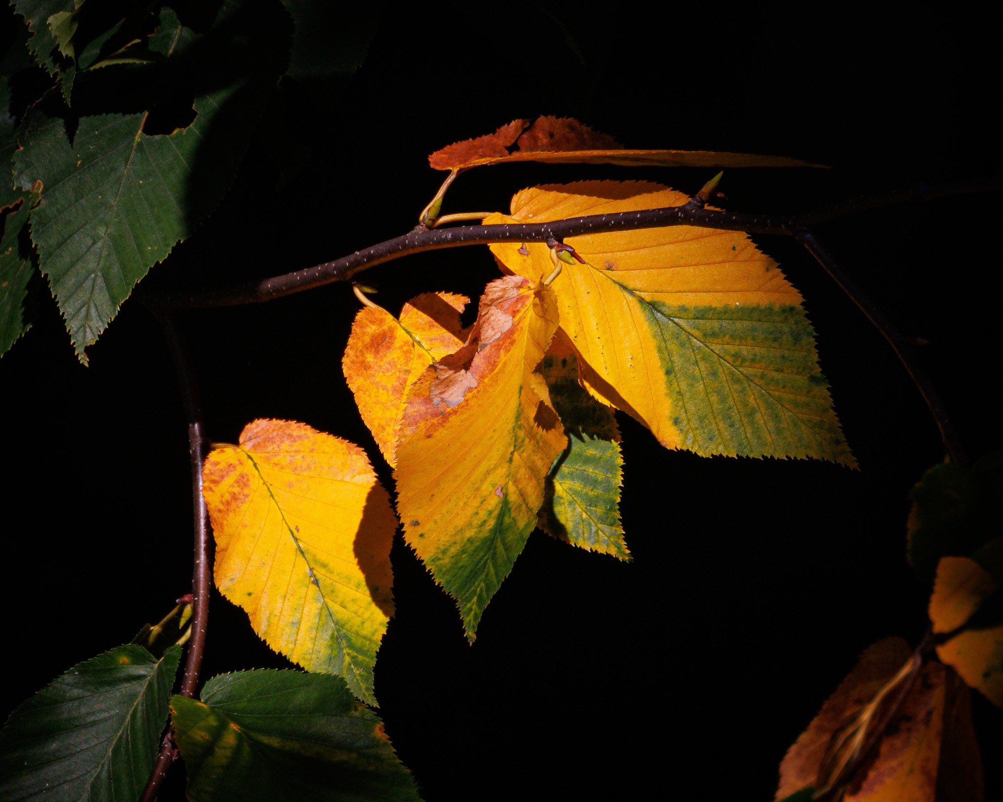 The first fall color in our yard, with a few beech leaves changing. This beech tree is usually one of the earliest trees to change color in our yard, probably due to the fact that it is growing in a moist area close to a vernal pool.