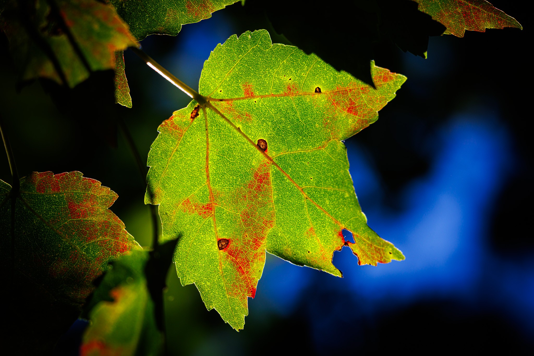 More recently, this maple tree has a few leaves that are just starting to change colors.